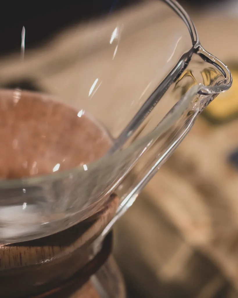 Follow our step-by-step guide to pouring the hot water with precision. Master the art of controlling the flow to ensure even saturation and a smooth extraction. Witness the magic of the Pour-Over Chemex as it unveils the coffee’s enticing aroma. Experience the sensory delight as the rich aroma fills the air.