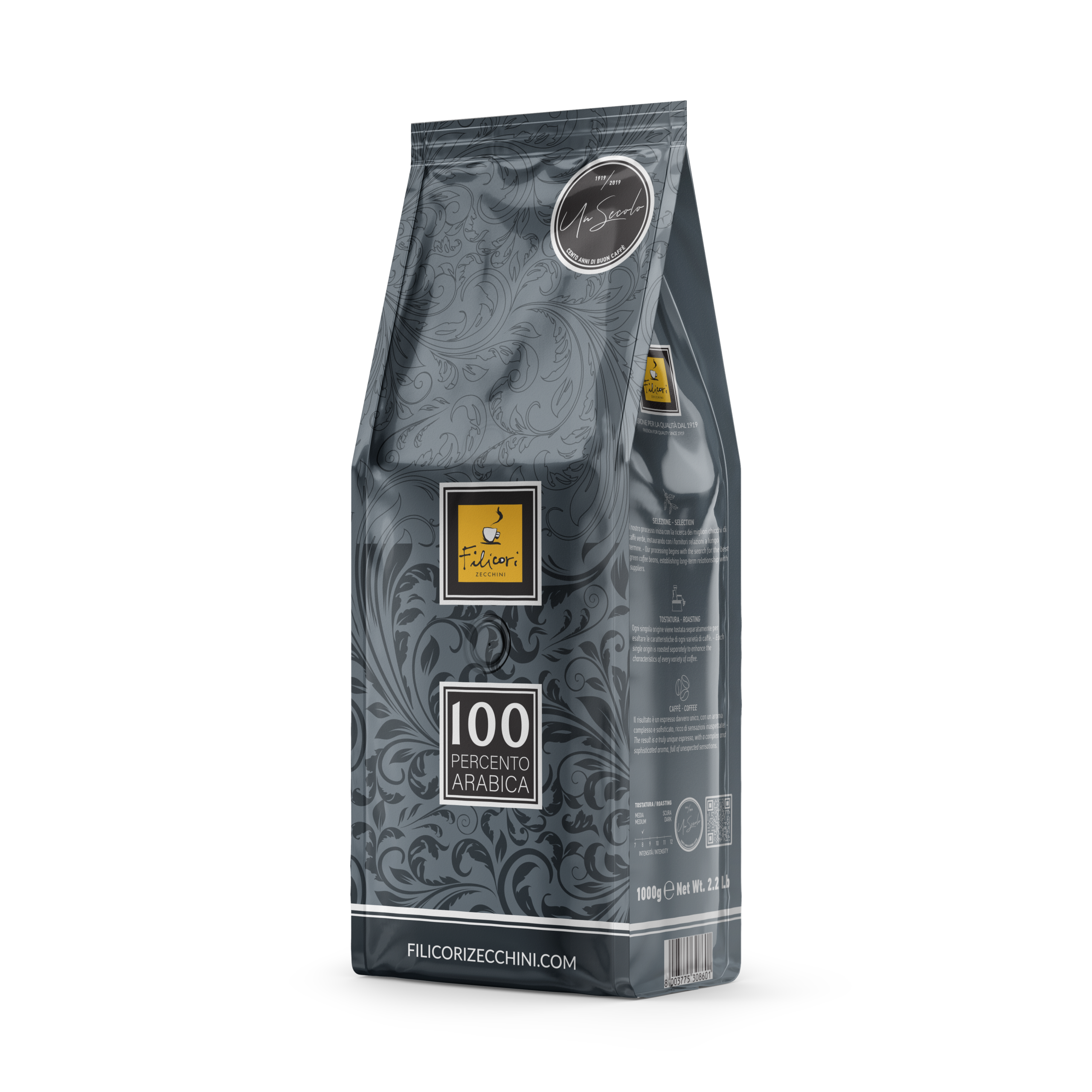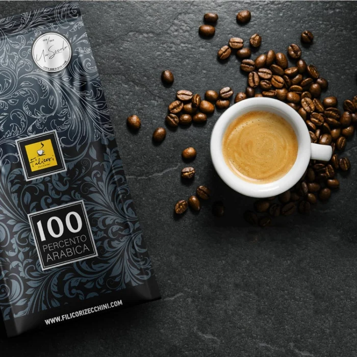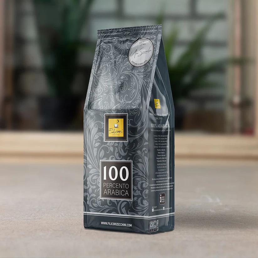 Filicori Zecchini 100 Percento Arabica is a distinguished blend created from carefully selected Arabica beans sourced from Brazil, Guatemala, and Mexico, celebrating a century of Italian coffee heritage, craftsmanship, and excellence. Elegantly roasted to perfection, this exceptional coffee reveals a rich, aromatic profile with a silky texture, vibrant citrus notes, and a beautifully refined character.